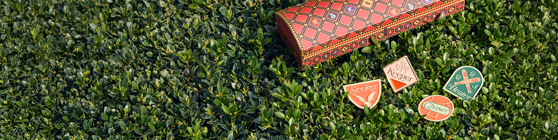Celebrate every position on the pitch with this collectible four‑pin assortment, housed in a replica Quidditch trunk.