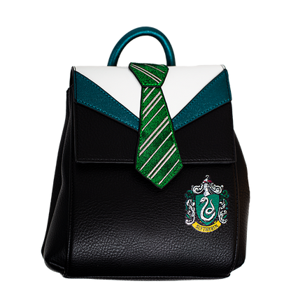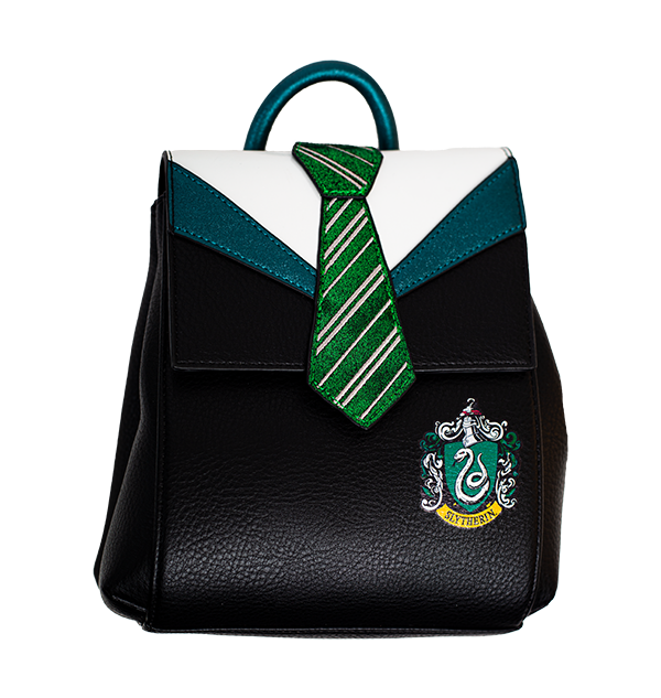 Designed to cleverly reproduce the look of a Hogwarts house robe, this stylish Slytherin mini backpack has been crafted of high-quality polyurethane giving it the luxurious feel of fine pebbled leather.